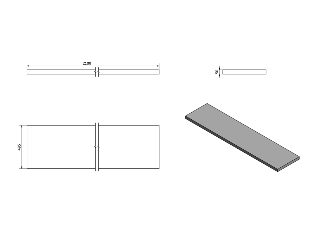 AVICE deska pod umyvadlo 210x50cm, tl.5cm, šedý kámen