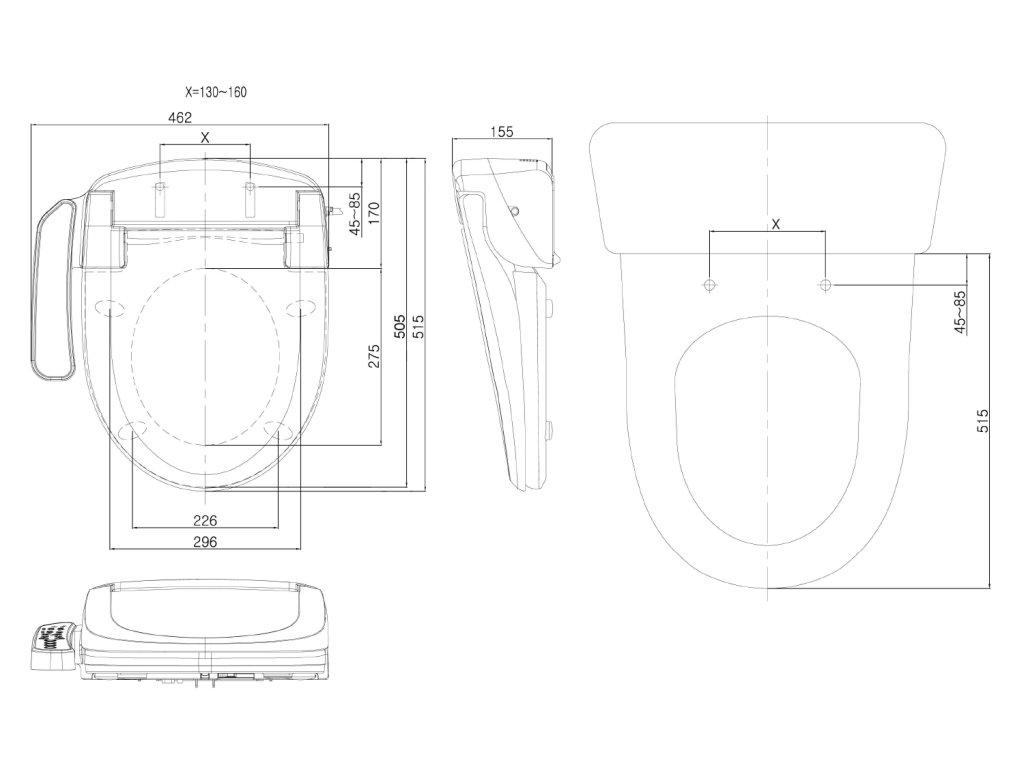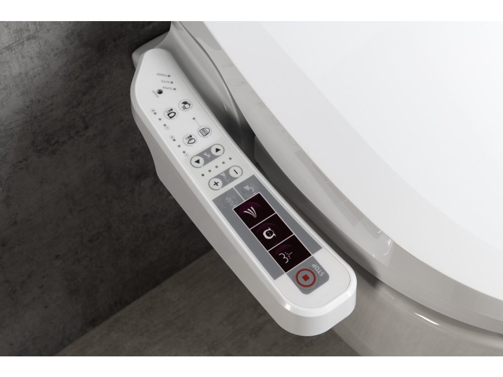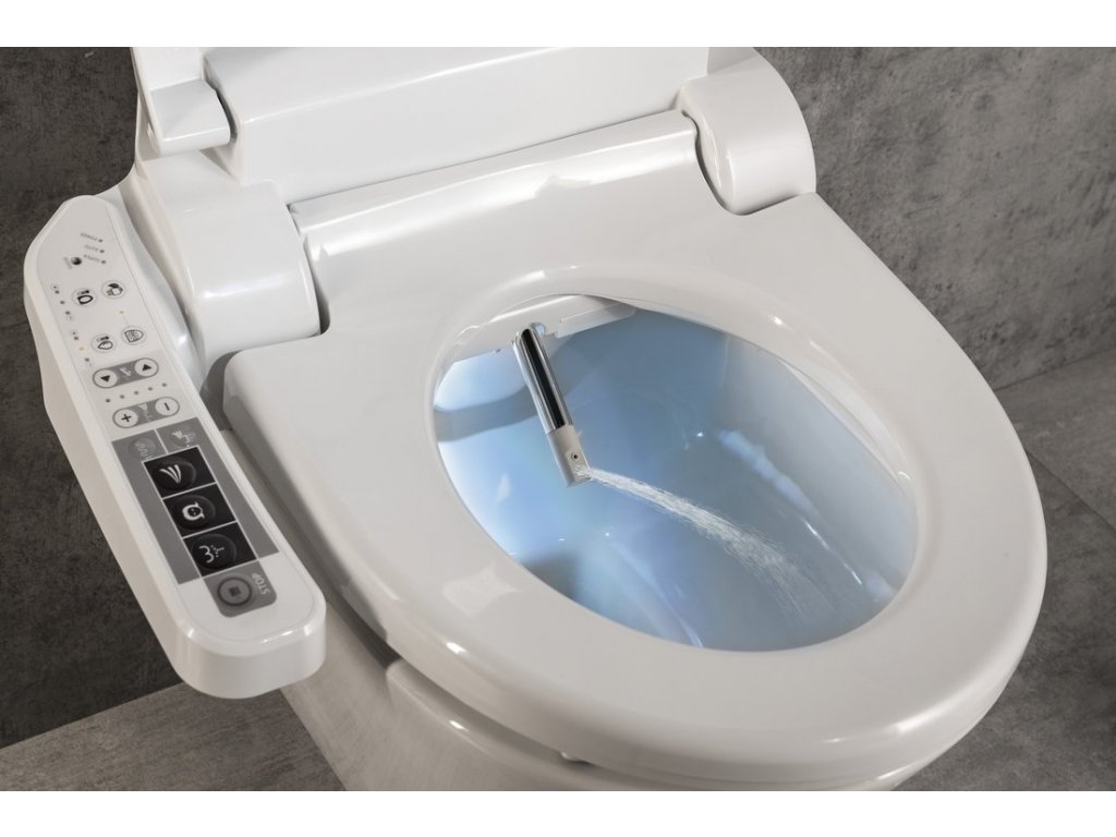 | Funkce bidetu | Bidetová a dámská tryska, Nastavitelná poloha trysek, Nastavitelná teplota vody, Nastavitelný tlak vody, Oscilační pohyb trysky, Masážní oplach, Teplovzdušné sušení, Vyhřívané sedátko, Dotykový senzor v sedátku, LED noční osvětlení, Automatické čištění trysek, Úsporný režim ve stand by |