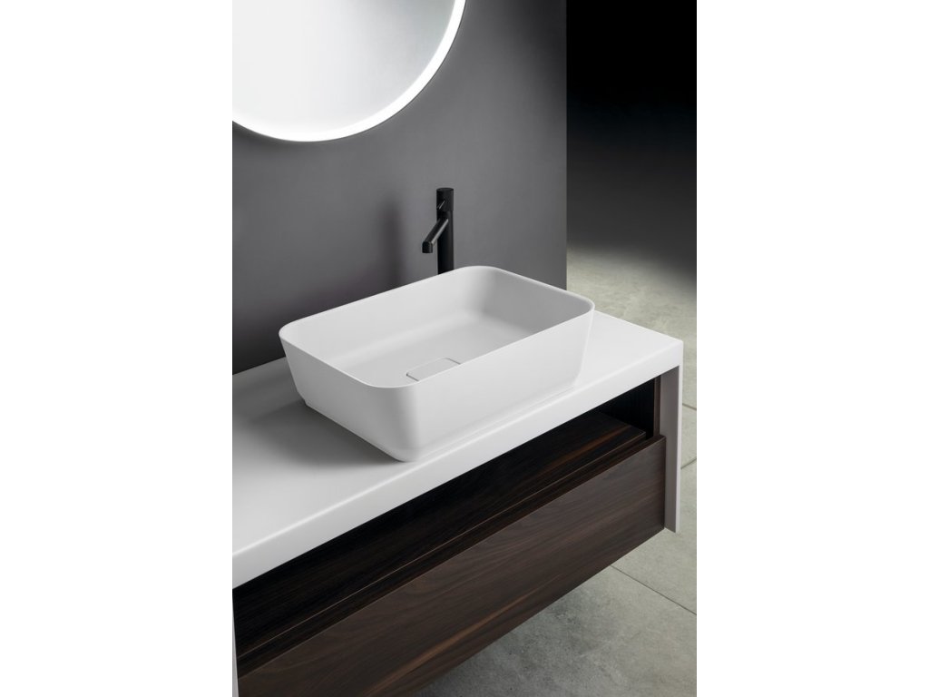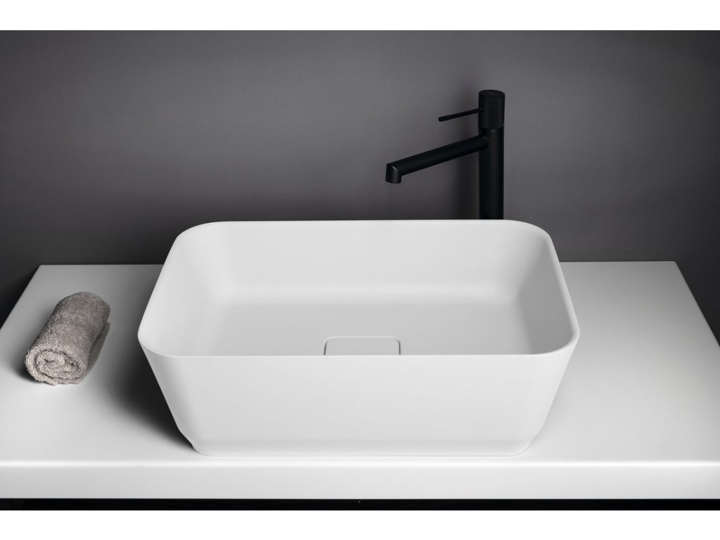 BANERA SQUARE umyvadlo na desku, litý mramor, 50x36cm, bílá mat