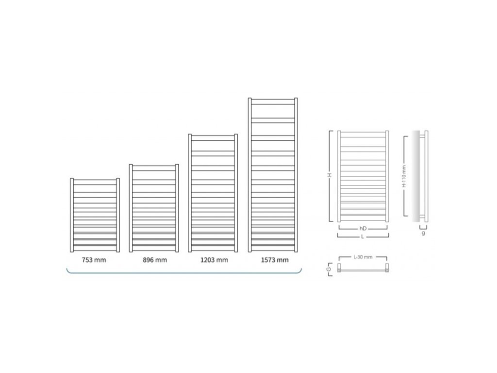 - 500 × 1 573 mm, výkon 581 W, (topná tyč 600 W)