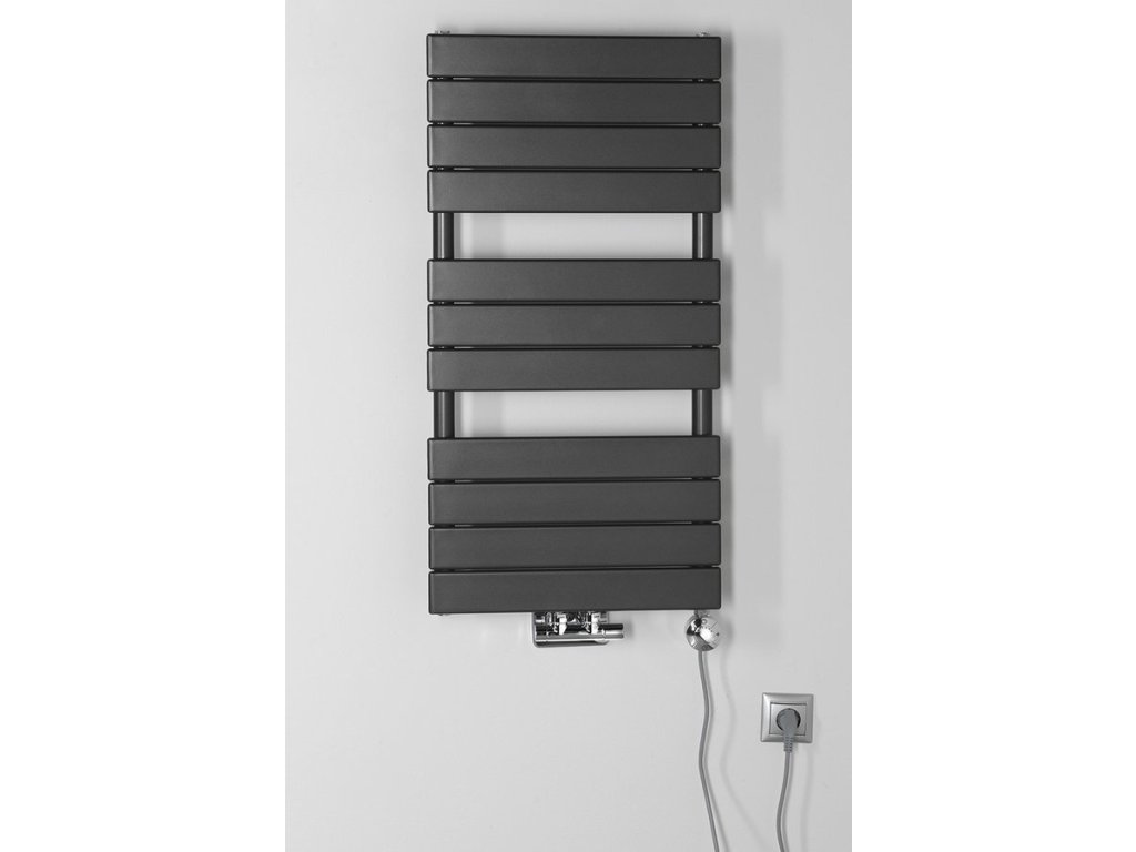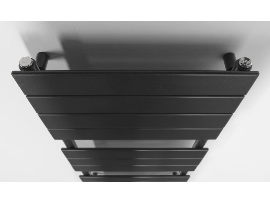 Stylový radiátor z hladkých zaoblených ocelových profilů s praktickým středovým připojení s roztečí 50 mm a zároveň otvory se záslepkou ve svislých kolektorech umožňují kombinované zapojení elektrické topné tyče nebo stranové připojení.