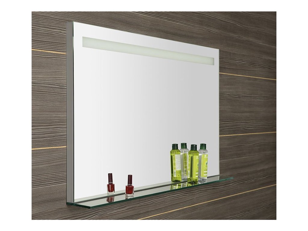 Podsvícená zrcadla osvětlují koupelnu jasným homogením svitem díky modernímu zdroji LED. Jejich dlouhá životnost a nízká spotřeba jsou hlavními výhodami oproti klasické zářivce. Světlo vyzařované skrz vypískované části dodá koupelně jemné osvětlení, zvláště příjemné při ranní hygieně. Zároveň jistě oceníte i praktickou polici, která je součástí zrcadla.