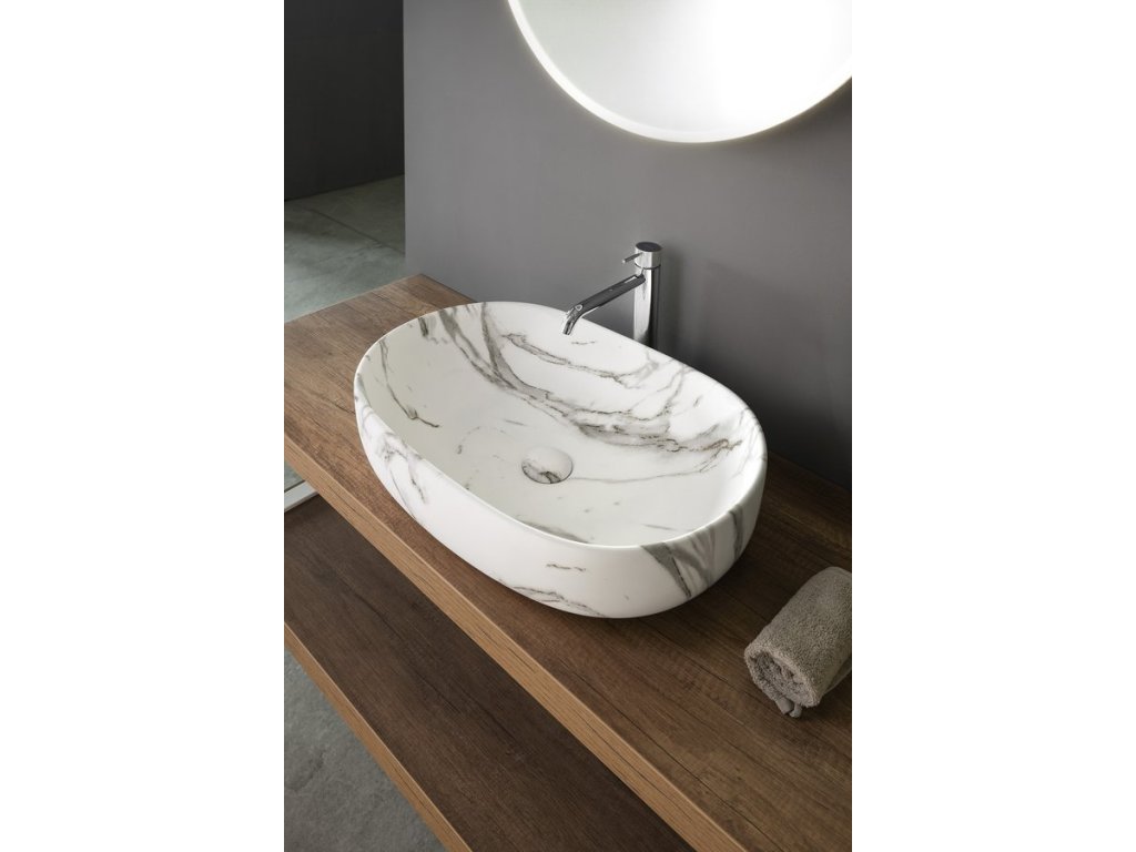CALEO keramické umyvadlo na desku, 60x42cm, bianco carrara