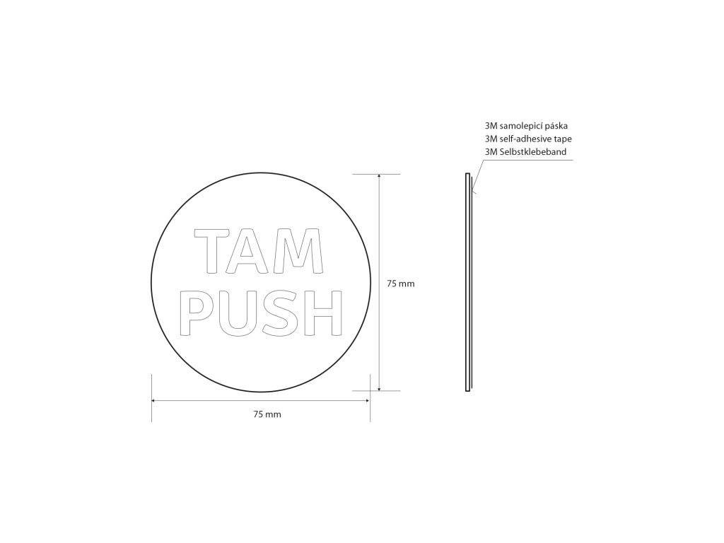 Cedule TAM/PUSH, Ø 75mm, nerez mat