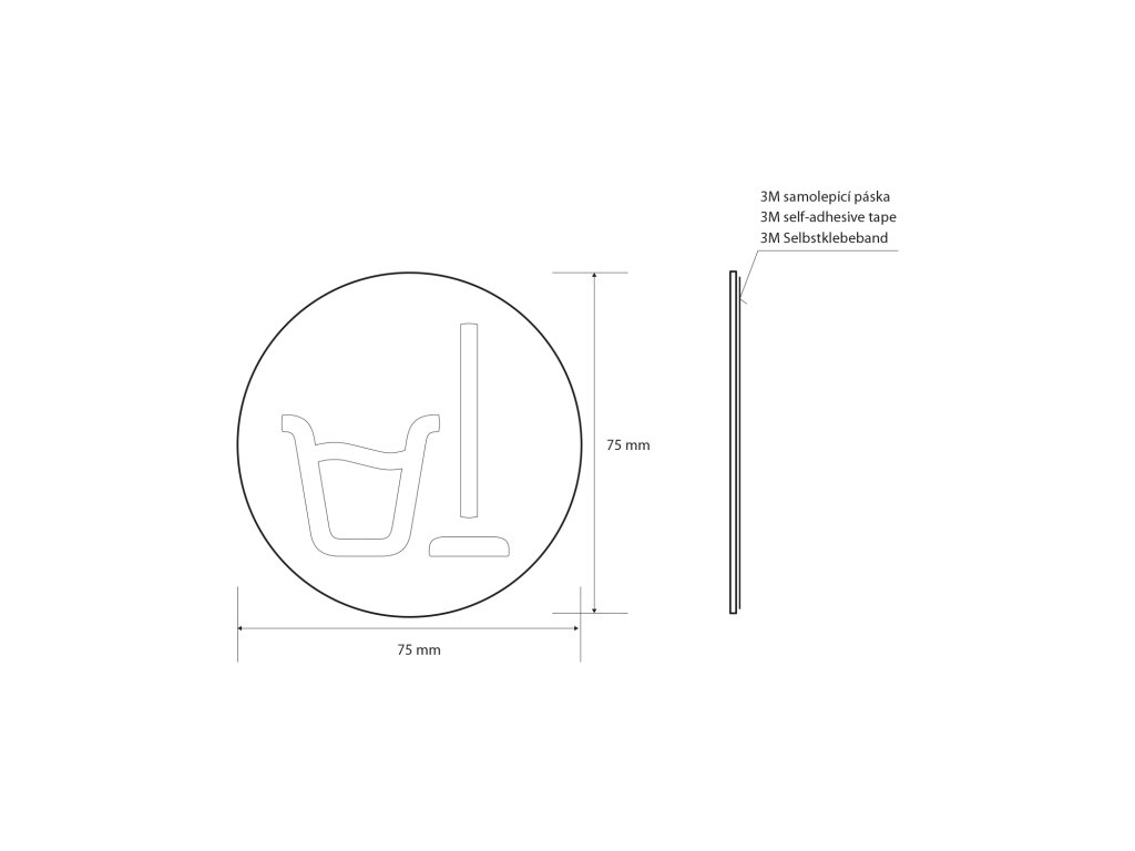 Cedule úklidová místnost, Ø 75mm, nerez mat