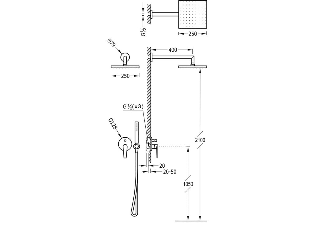CLASS-TRES 20518002 Podomítkový jednopákový sprchový set - lesklý chrom
