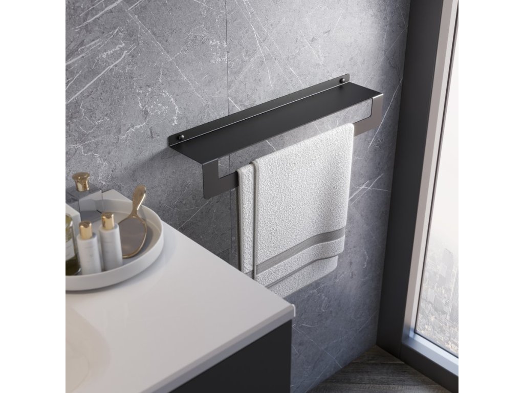 CLEO polička s držákem ručníků 300mm, černá mat