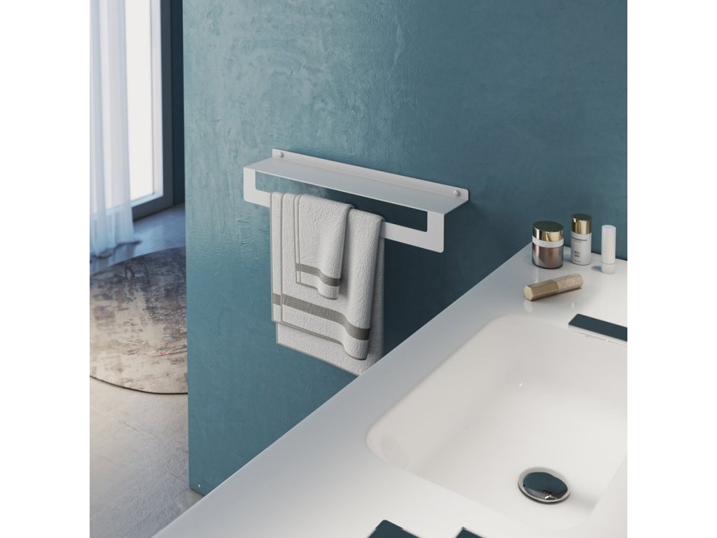 CLEO polička s držákem ručníků 500mm, bílá mat