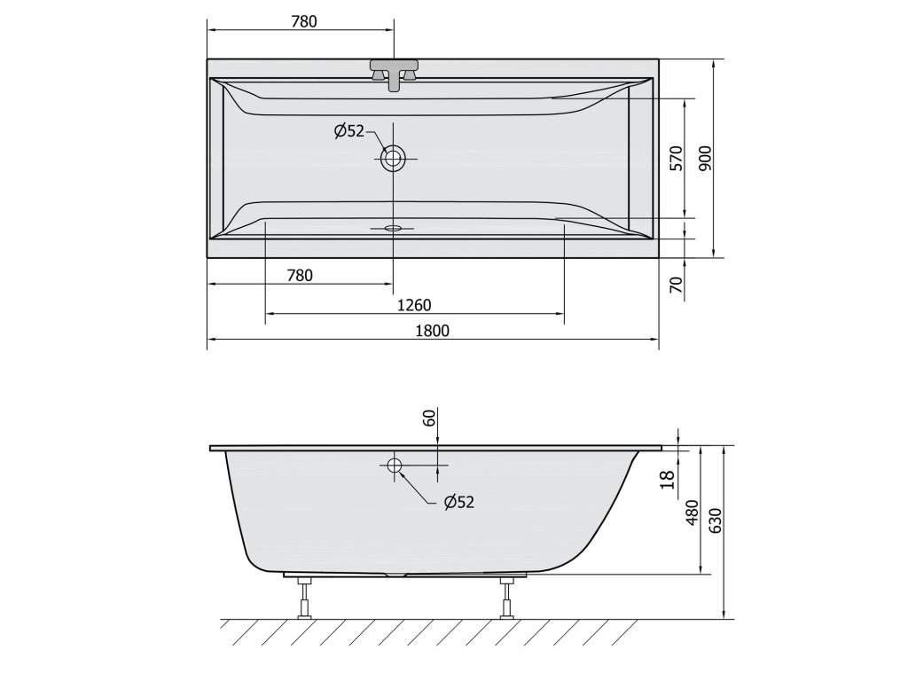 CLEO SLIM obdélníková vana 180x90x48cm; bílá
