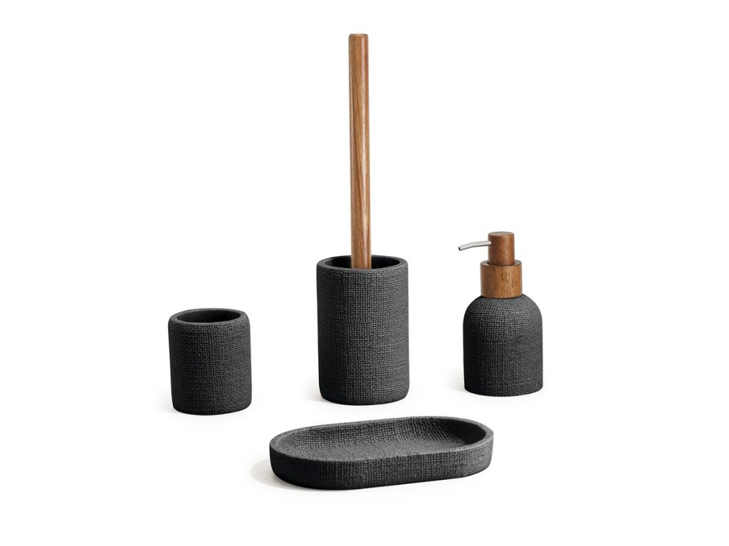 Doplňky CRAFT v decentním provedení kombinují texturu jutové tkaniny v béžovém a černém provedení s akáciovým dřevem. Vyjímat se budou v koupelně laděné do přírodního stylu. Mýdlenka nadstandardních rozměrů lze využít i jako miska na odkládání drobností a šperků.
