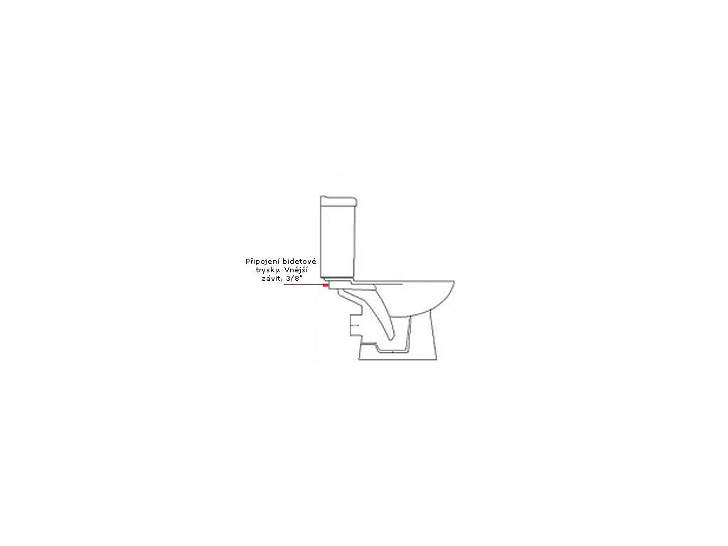 Možnost napojení mísy s integrovaným bidetem na oplachovací voduUprostřed – těsně pod nádrží vzadu za wc mísou – viz. obrázky vlevo