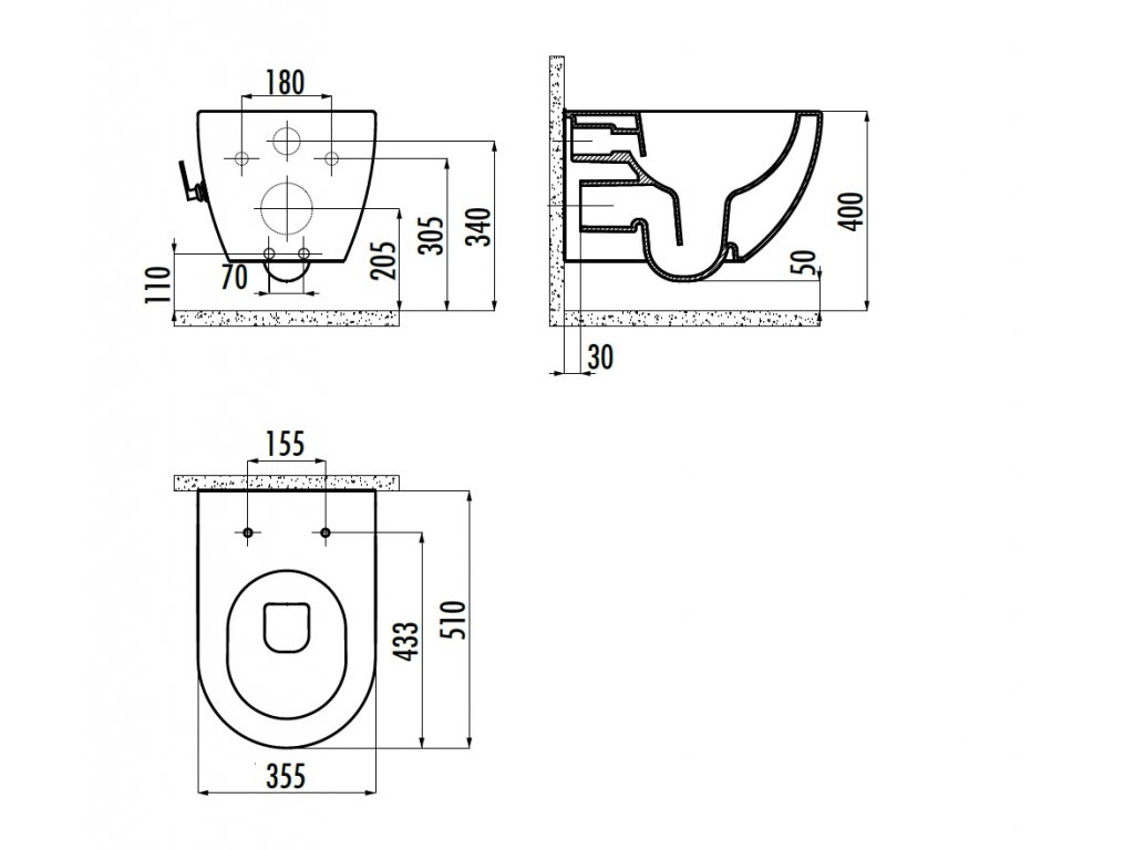 | Typ sprchovací toalety: | Závěsné wc |