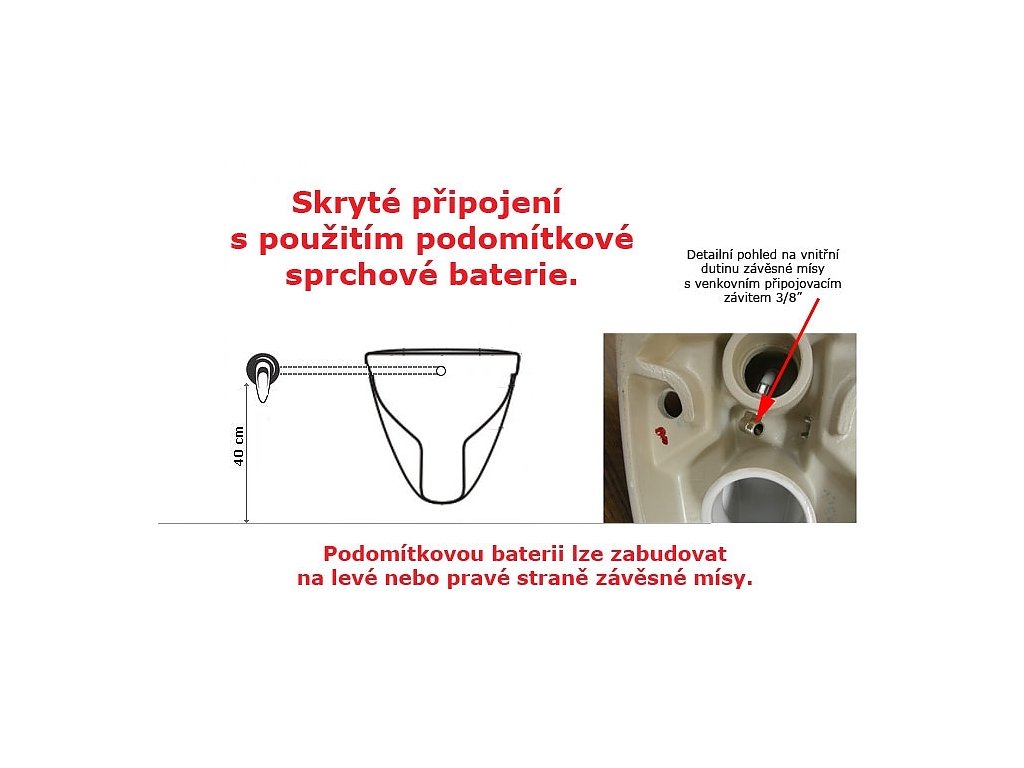 - 2.Venkovní připojení zboku speciálním otvorem v míse – viz. obrázkové přílohy
