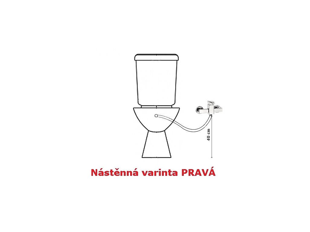 Možnost napojení mísy s integrovaným bidetem na oplachovací voduUprostřed – těsně pod nádrží vzadu za wc mísou – viz. obrázky vlevo