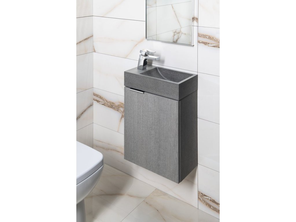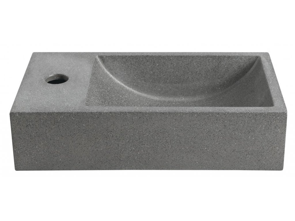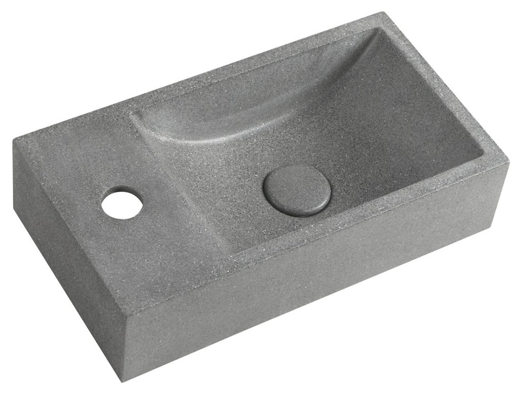 CREST L betonové umývátko, nástěnné, včetně výpusti, 40x22cm, černý granit