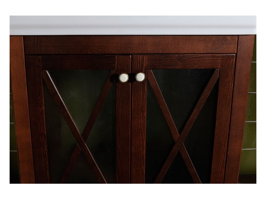 Skříňky v tmavém odstínu jsou napuštěny 2 vrstvami oleje: barevným pro sjednocení barvy dřeva a bezbarvým pro větší odolnost. U varianty ve starobílé jsou skříňky nabarveny bílou barvou, následně probroušeny pro docílení retro vzhledu a nakonec přelakovány bezbarvým lakem pro větší odolnost.
