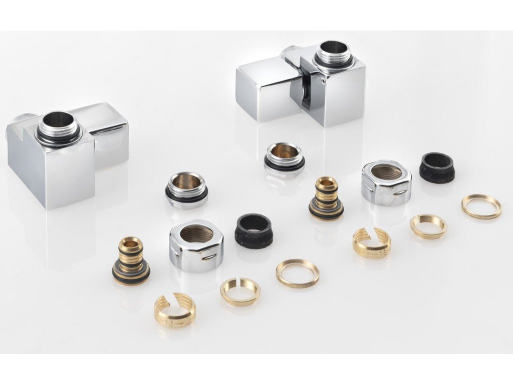 Námi nabízené připojovací ventily jsou dodávány včetně svěrného šroubení na nejběžnější potrubí (Ø15 mm Cu a Ø16 mm Alupex), pro dopojení tak není třeba nic dokupovat. Pro zakrytí přívodních trubek a otvorů ve zdi doporučujeme přikoupit krycí rozety.