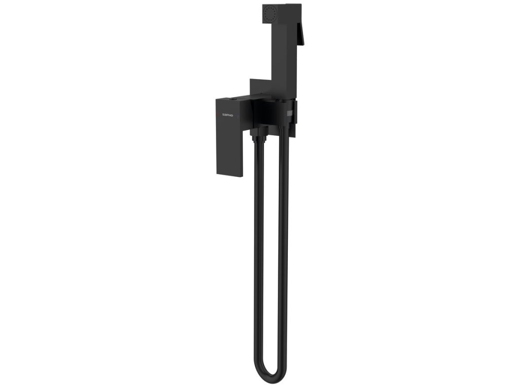 CUBEMIX podomítková bidetová baterie se Stop sprškou, hranatá, černá mat