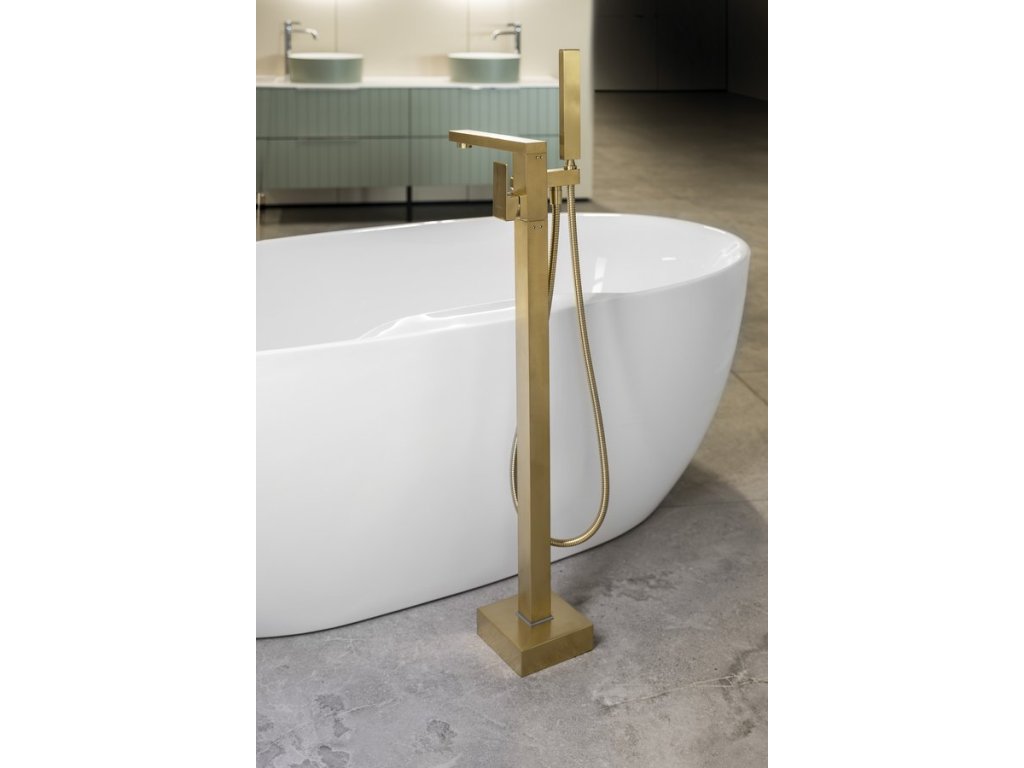 CUBEMIX vanová baterie s připojením do podlahy, zlato mat