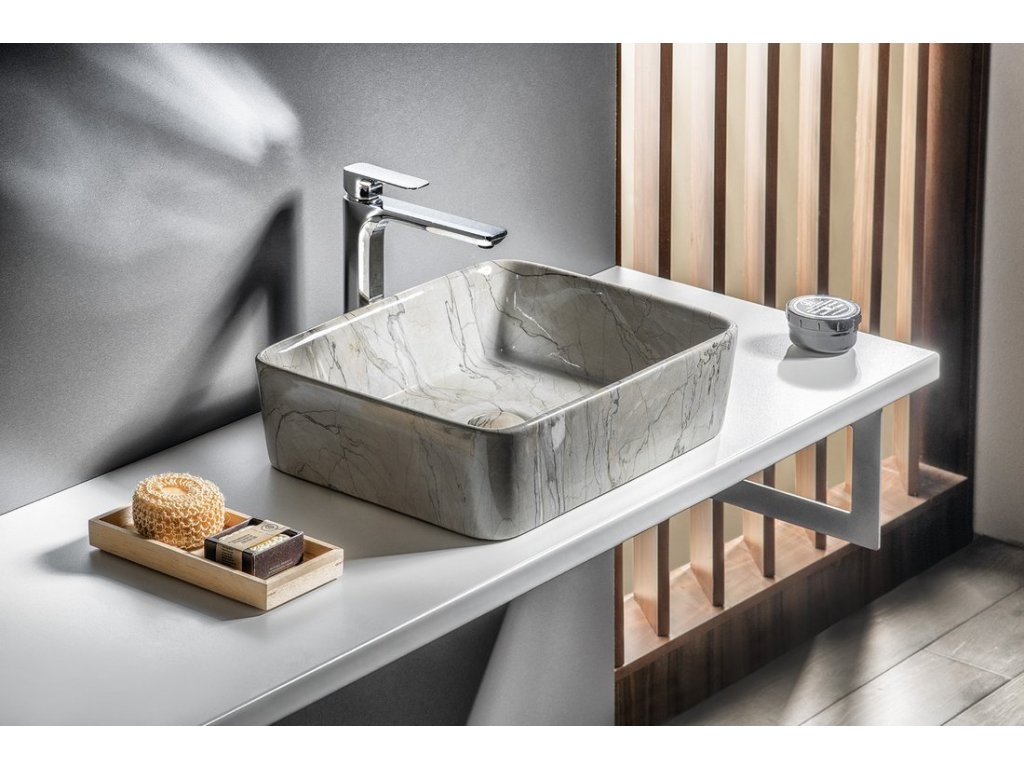 Série keramických umyvadel DALMA zaujme kamenným efektem. Umyvadla jsou glazovaná s vypálenými obtisky v designu kamene, čímž je zaručena stálost a trvanlivost dekoru. Vybírat můžete nejen ze tří dekorů v odstínech mramoru, ale i z pěti tvarů. Umyvadla jsou určena k postavení na desku, ke všem lze dokoupit uzavíratelnou výpust v barvě umyvadla.