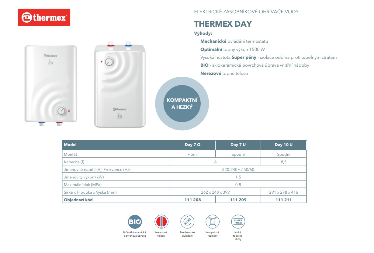 ELEKTRICKÉ ZÁSOBNÍKOVÉ OHŘÍVAČE VODY THERMEX DAY