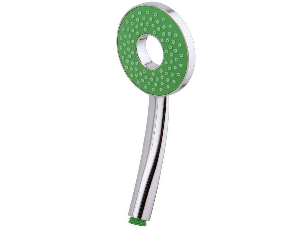 Designová sprchová hlavice DESIGN 5 zelená1 funkční zelená designová sprchová hlavice DESIGN 5 s kulatým otvorem uprostřed je vybavena gumovými nopkami proti usazování vodního kamene a snadnější údržbu. Důsledkem tohoto je také prodloužená životnost této sprchové hlavice.