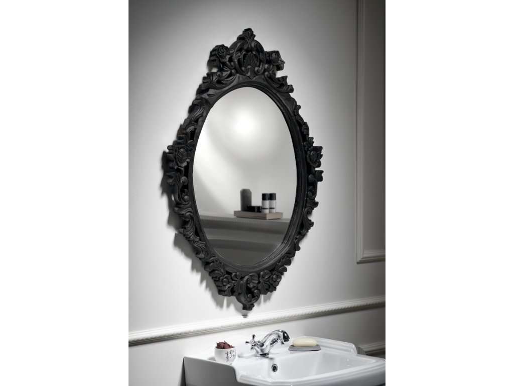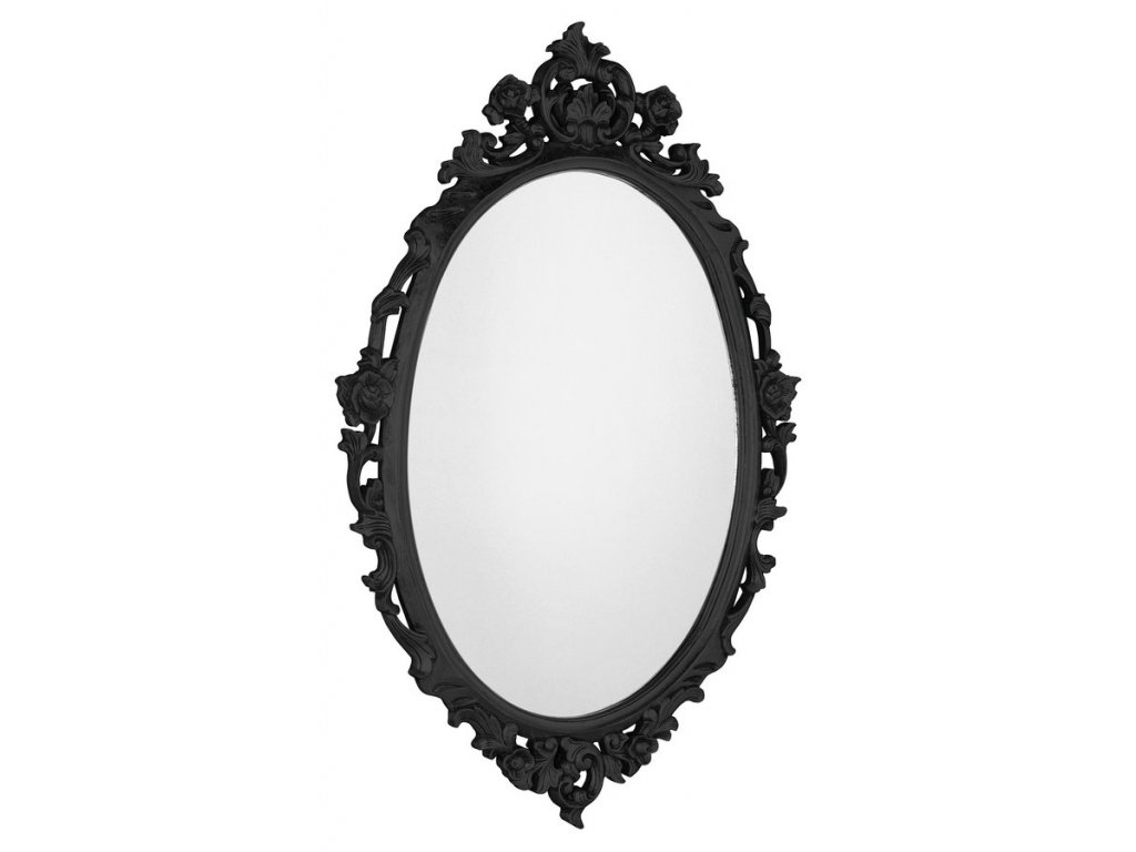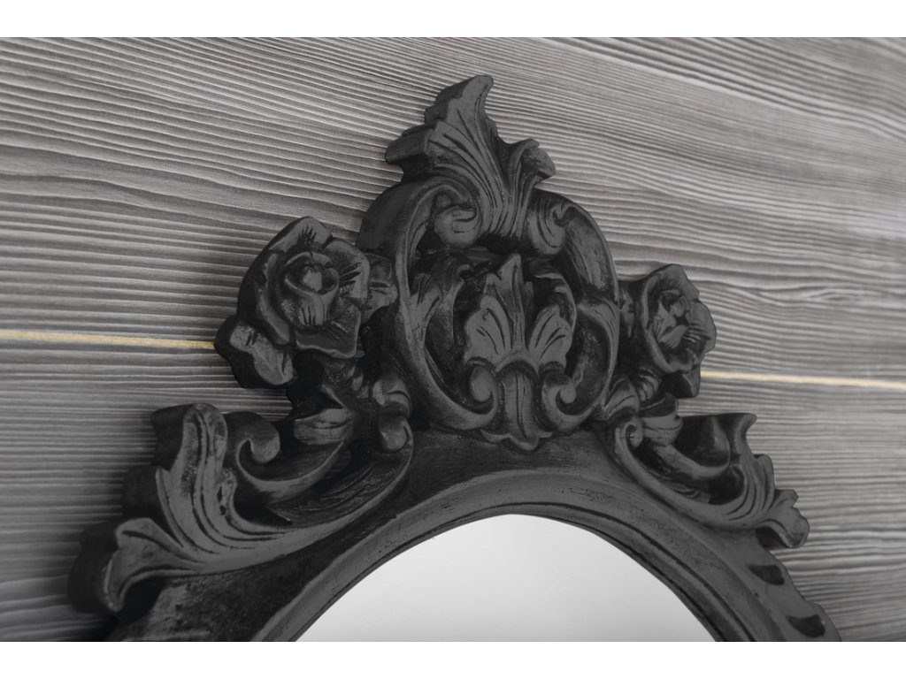 DESNA oválné zrcadlo ve vyřezávaném rámu, 80x100cm, černá