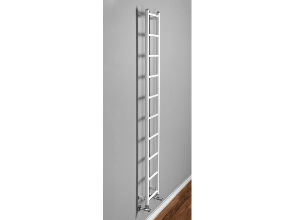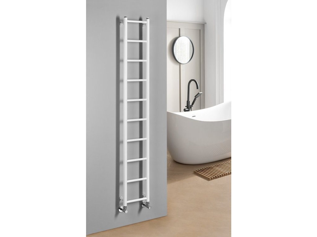Elegantní koupelnový radiátor ze správně kombinovaných průměrů vodorovných a svislých trubek. Krása v jednoduchosti skloubená s atraktivním barevným provedením.