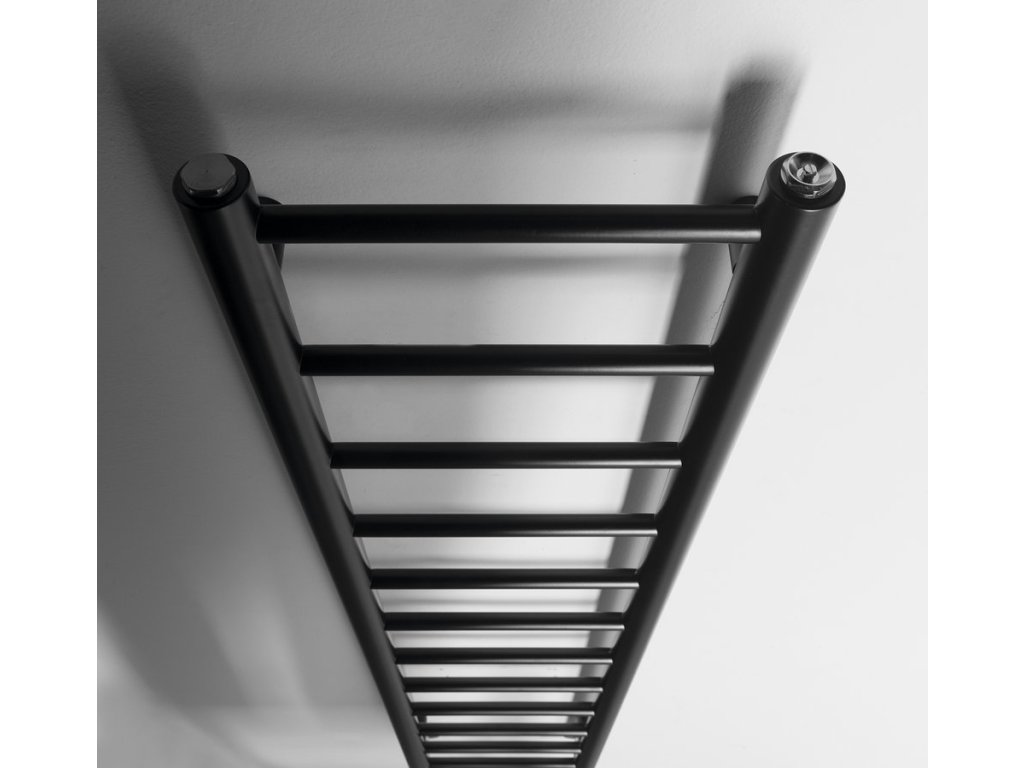 Elegantní koupelnový radiátor ze správně kombinovaných průměrů vodorovných a svislých trubek. Krása v jednoduchosti skloubená s atraktivním barevným provedením.