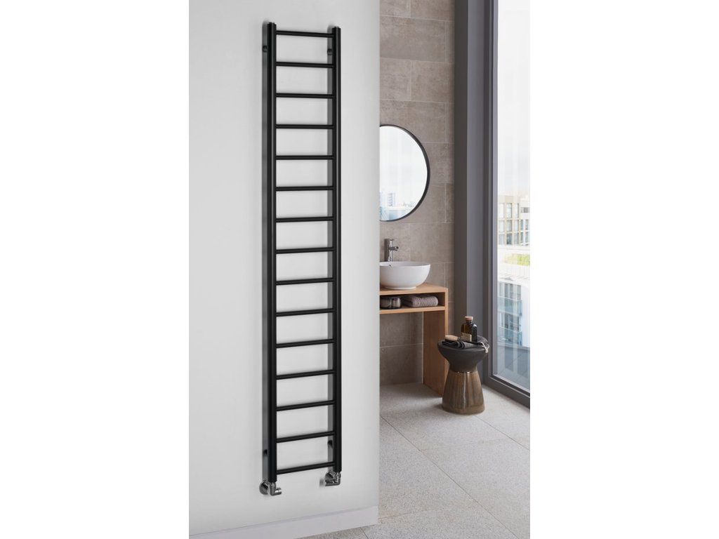 Elegantní koupelnový radiátor ze správně kombinovaných průměrů vodorovných a svislých trubek. Krása v jednoduchosti skloubená s atraktivním barevným provedením.