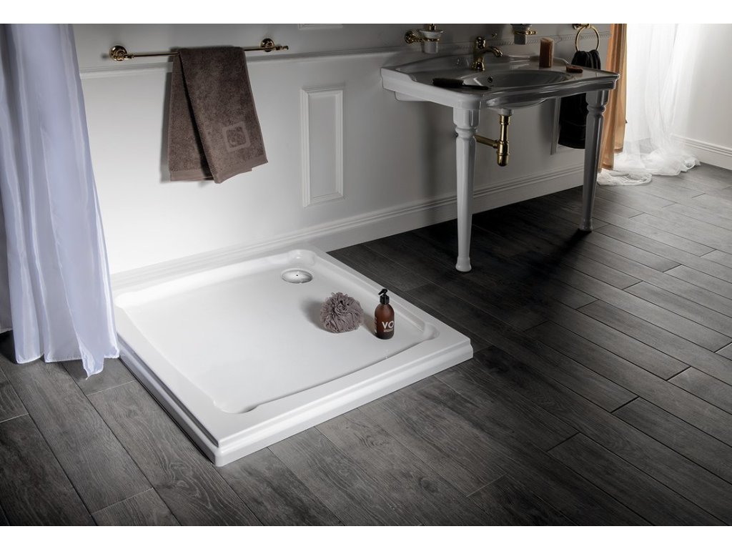 DIONA sprchová vanička z litého mramoru, čtverec 90x90x7,5cm, bílá