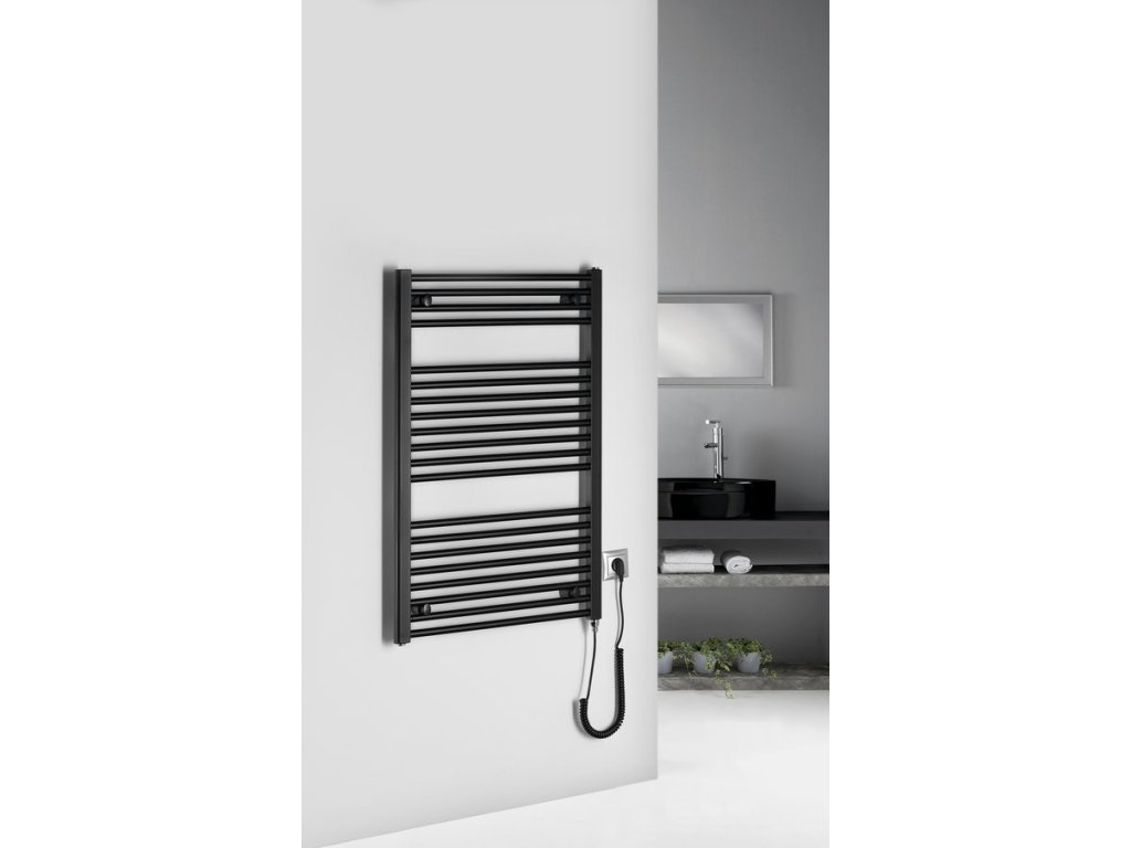 Elektrická otopná tělesa s rovnými (DIRECT-E) a oblými (ORBIT-E) vodorovnými trubkami v bílé a černé barvě. Elektrická topení jsou vhodná k umístění do koupelen, chodeb nebo WC. Jsou opatřena elektrickou topnou tyčí s kabelem a vidlicí do zásuvky.