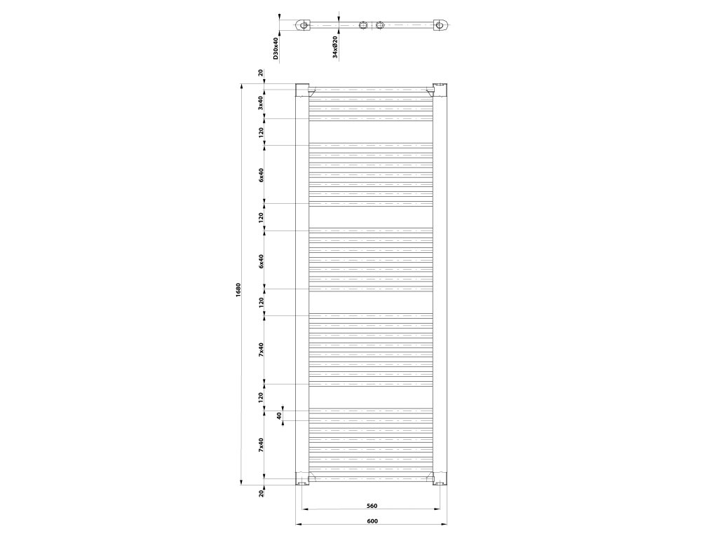 DIRECT otopné těleso s bočním připojením 600x1680mm, černá mat