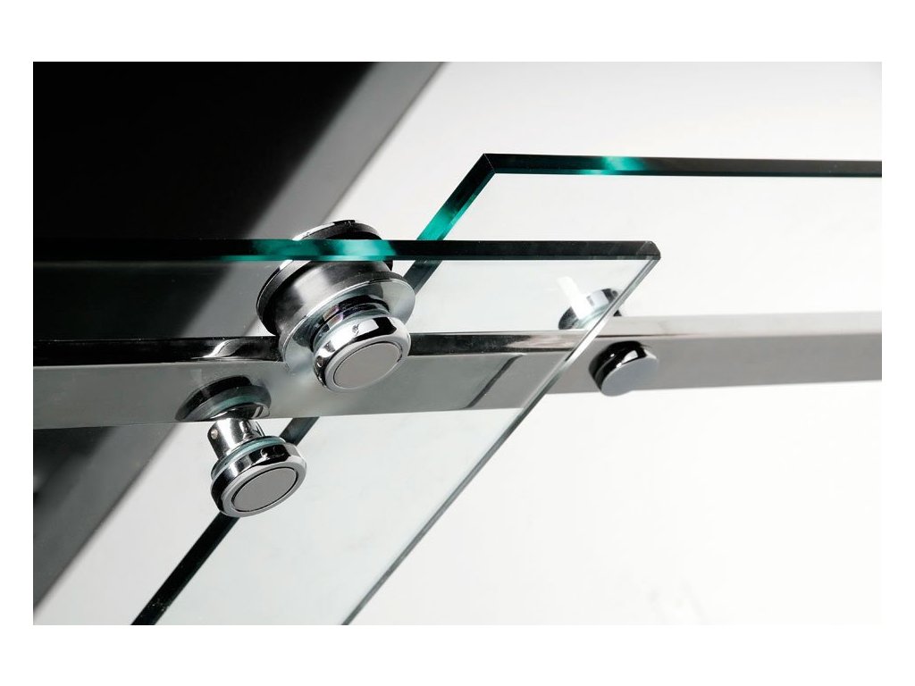 - Sklo dveří je volně zavěšené bez spodního vodícího profilu