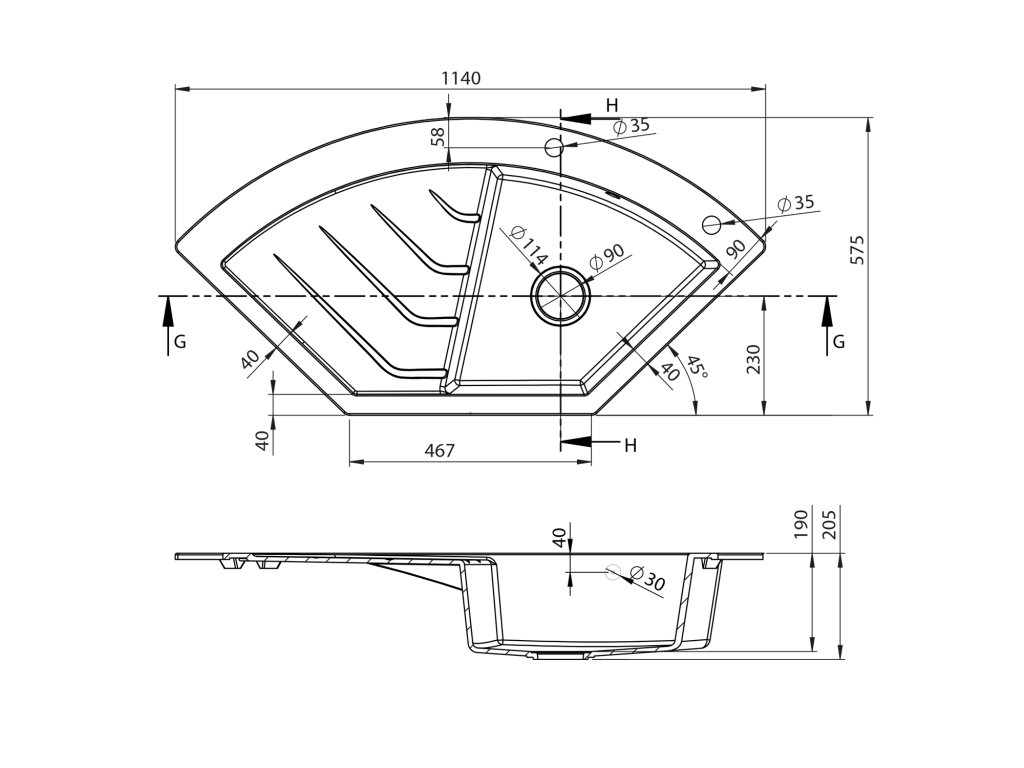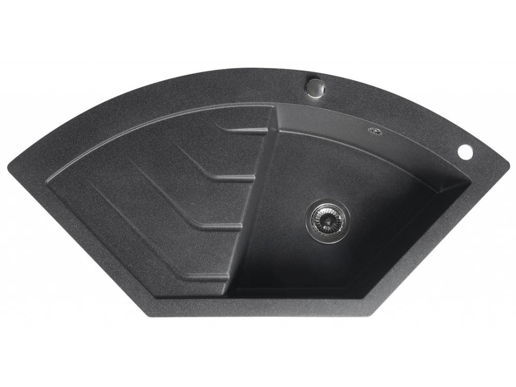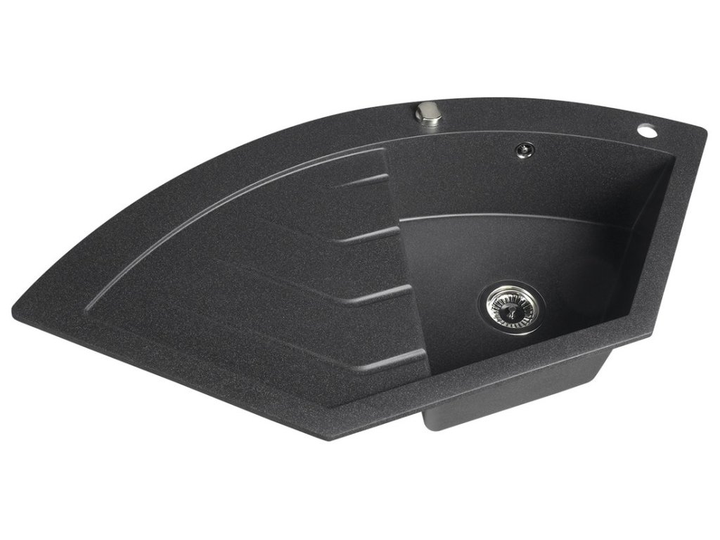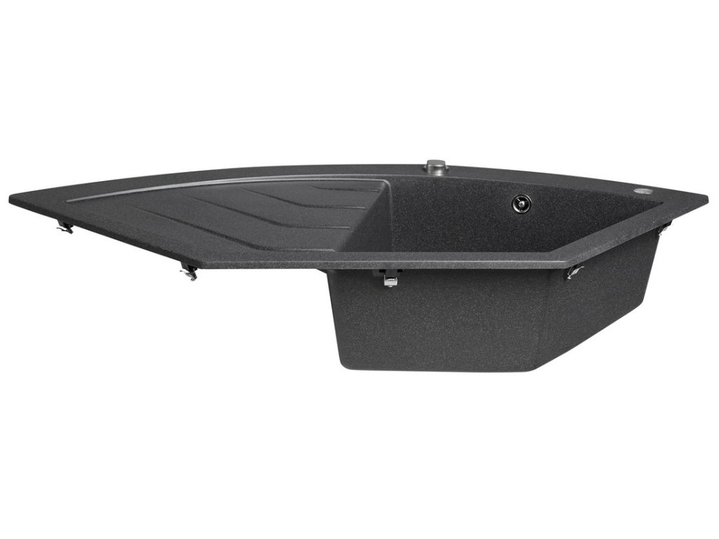 Granitový vestavný dřez rohový s odkapem, 114x57,5cm, černá