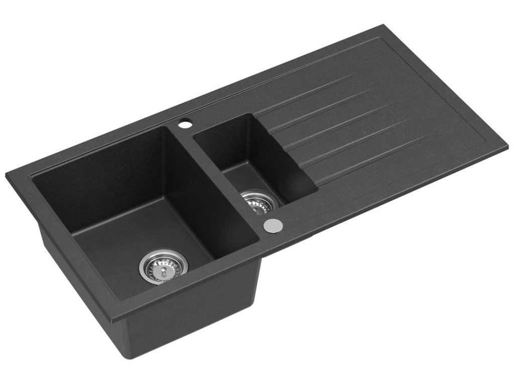 Granitový vestavný dřez s odkapem a vaničkou, 100x50cm, černá