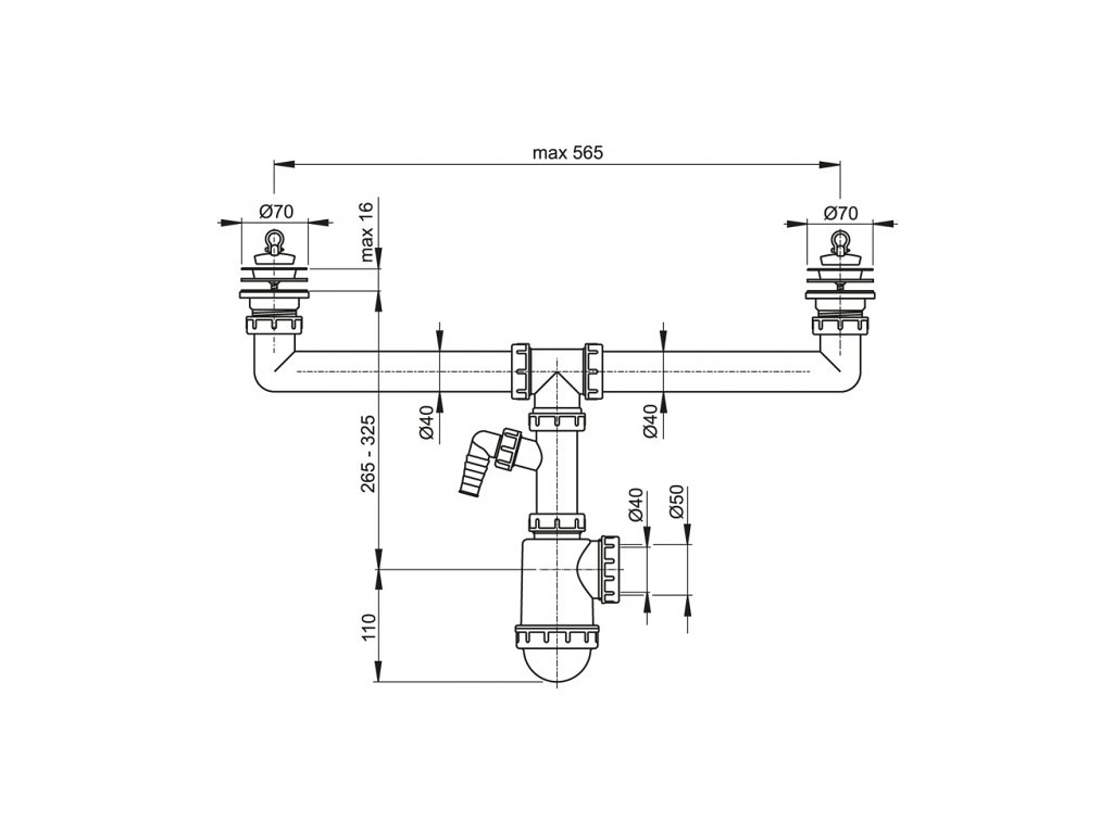 Alcadrain Dřezový sifon Alcadrain A-449P pro dvoudřez s odbočkou (dříve Alcaplast)