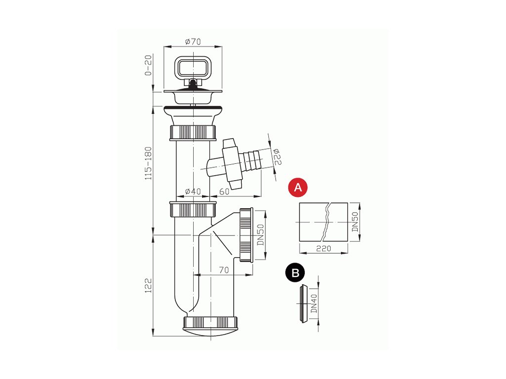 Sifon s odbočkou – varianta s trubkou 50 mm
