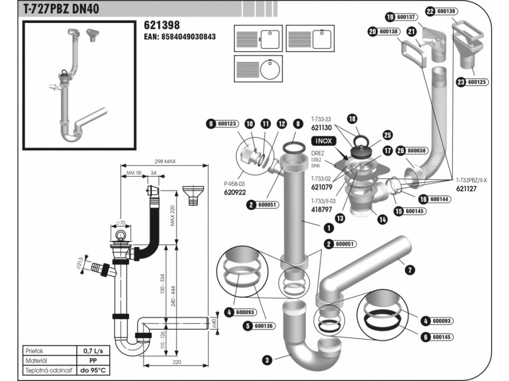 Slovarm Sifon dřezový T-727PBZ- sifon dřezový s výpustí