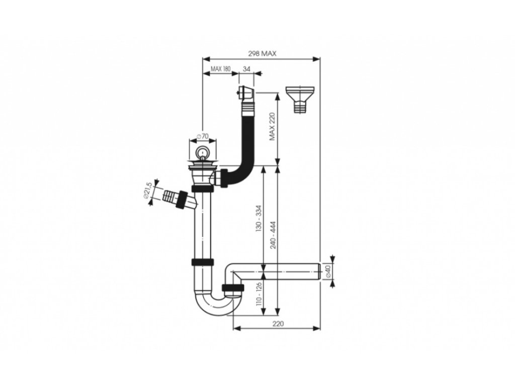 Dřezový sifon T-727PBZ s přepadem a odbočkou na pračku