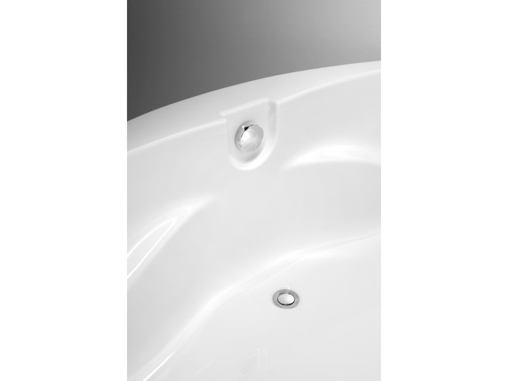 Vana s pohodlně tvarovanými stěnami pro opření zad na obou stranách a odtokem umístěným uprostřed.