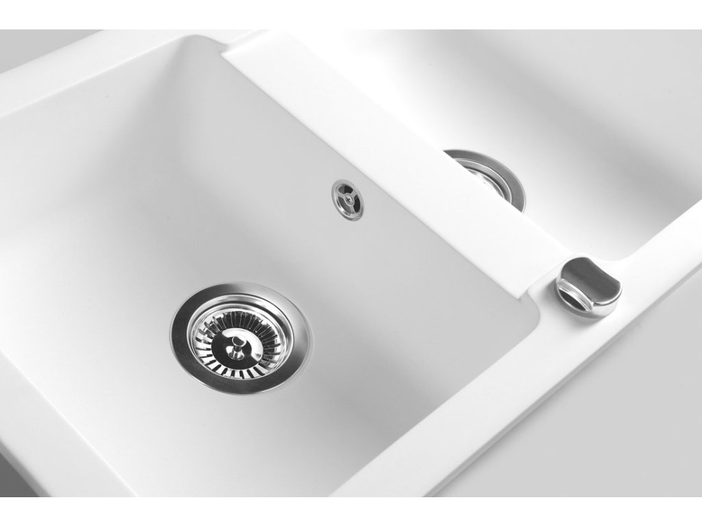 Speciální složení materiálu použitého pro výrobu (kamenná drť, např. křemičitého písku - žuly a polymerové pryskyřice) a jeho vysoká hustota garantuje bezpečné používání výrobku, a proto jsou granitové dřezy tak oblíbené. Na granitovém dřezu nejsou vidět zaschlé kapky, je odolný vůči skvrnám a neztrácí barvu. Povrch je odolný proti poškrábání a odolává teplotám až do 180 °C. Při jejich údržbě se používají obvyklé čistící prostředky nebo prostředky na nádobí s jemným abrasivem. Výhodou je rozmanitá barevná nabídka.