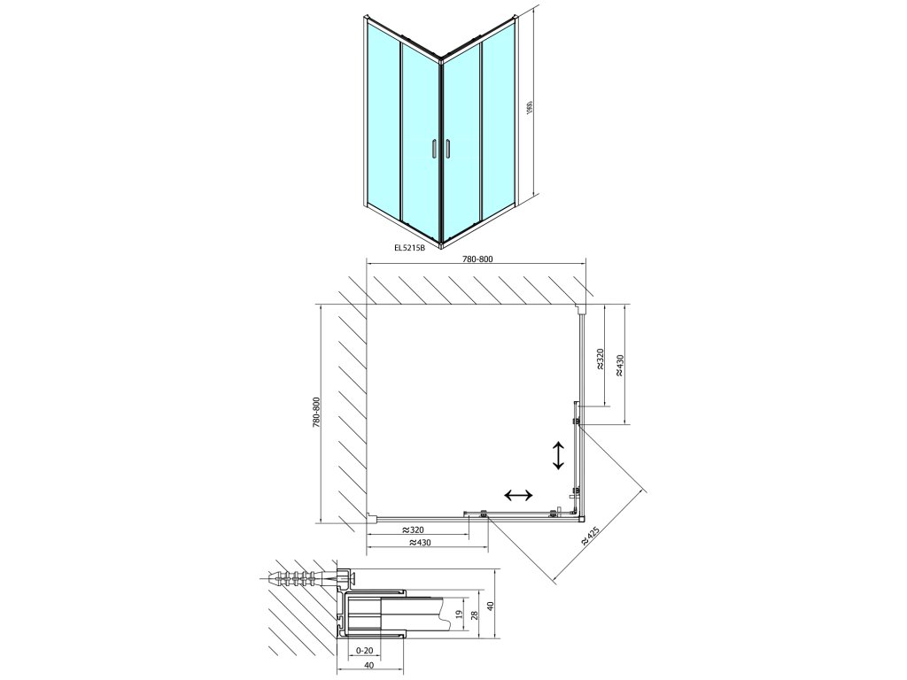 - Instalační rozměr dveří do niky lze díky rozšiřovacímu profilu EL825 zvětšit o 25 mm na každou stranu, celkem o 50 mm