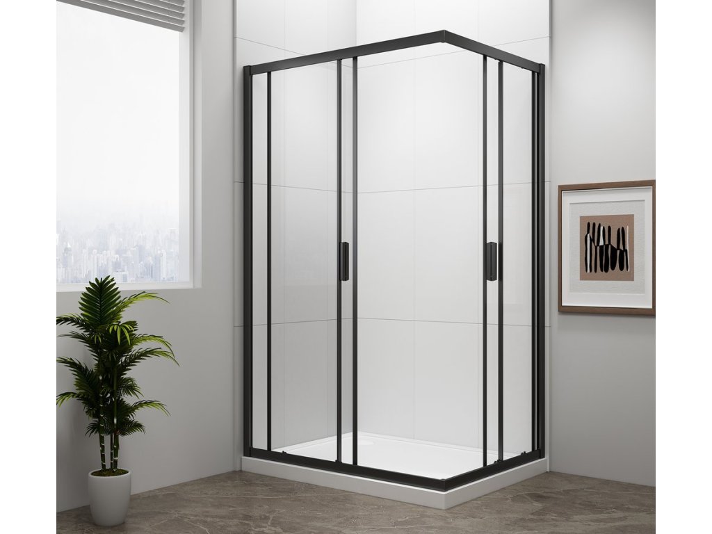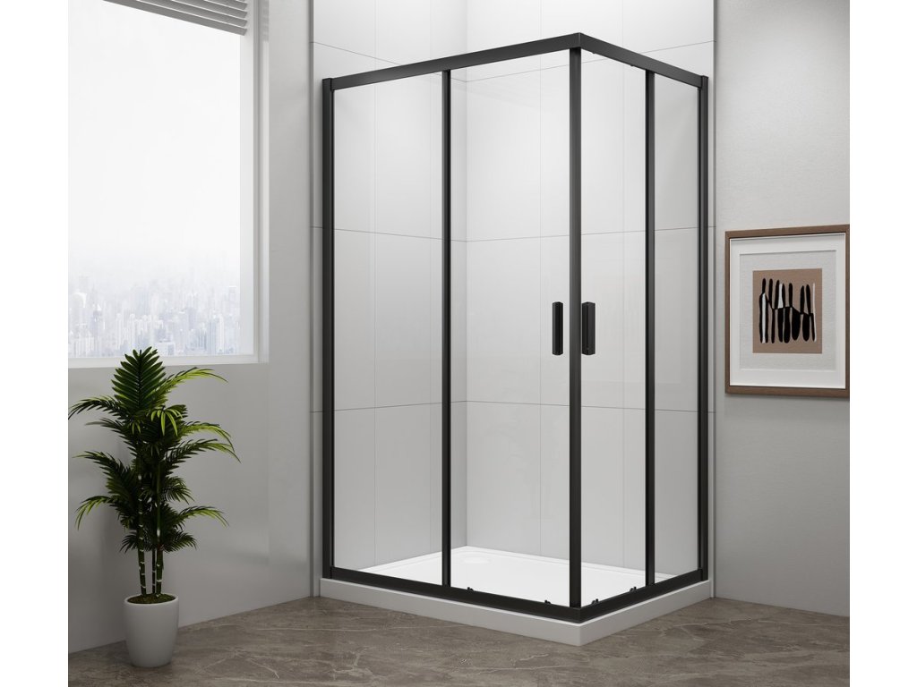 - Čtvercové zástěny s dvoudílnými posuvnými dveřmi, rohový vstup