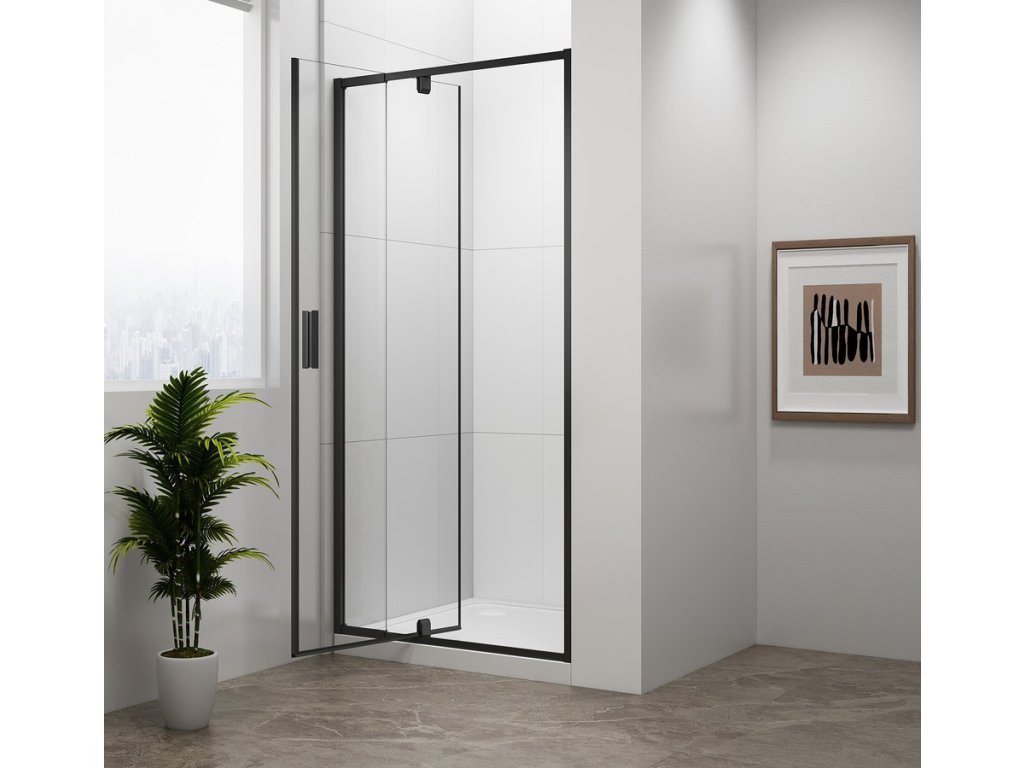 EASY BLACK sprchové dveře otočné 760-900mm, čiré sklo