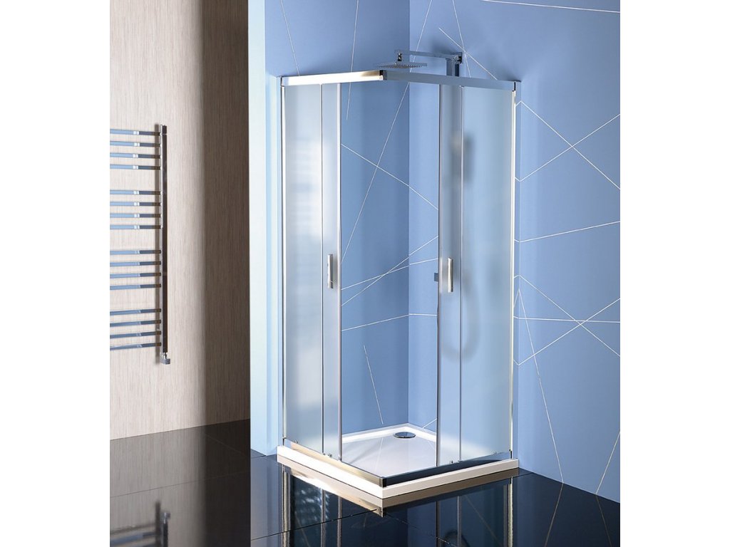 - Čtvercové zástěny s dvoudílnými posuvnými dveřmi, rohový vstup