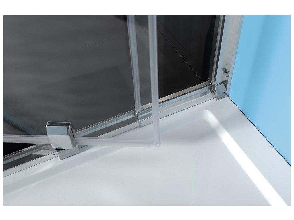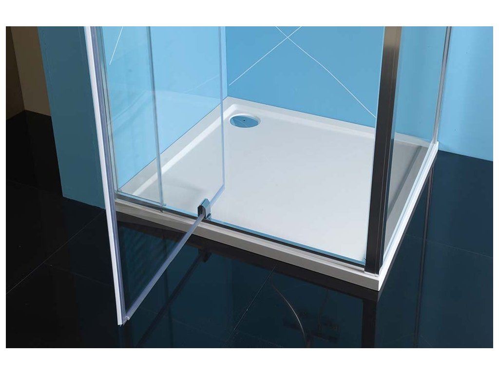 - Čtvercové zástěny s dvoudílnými posuvnými dveřmi, rohový vstup