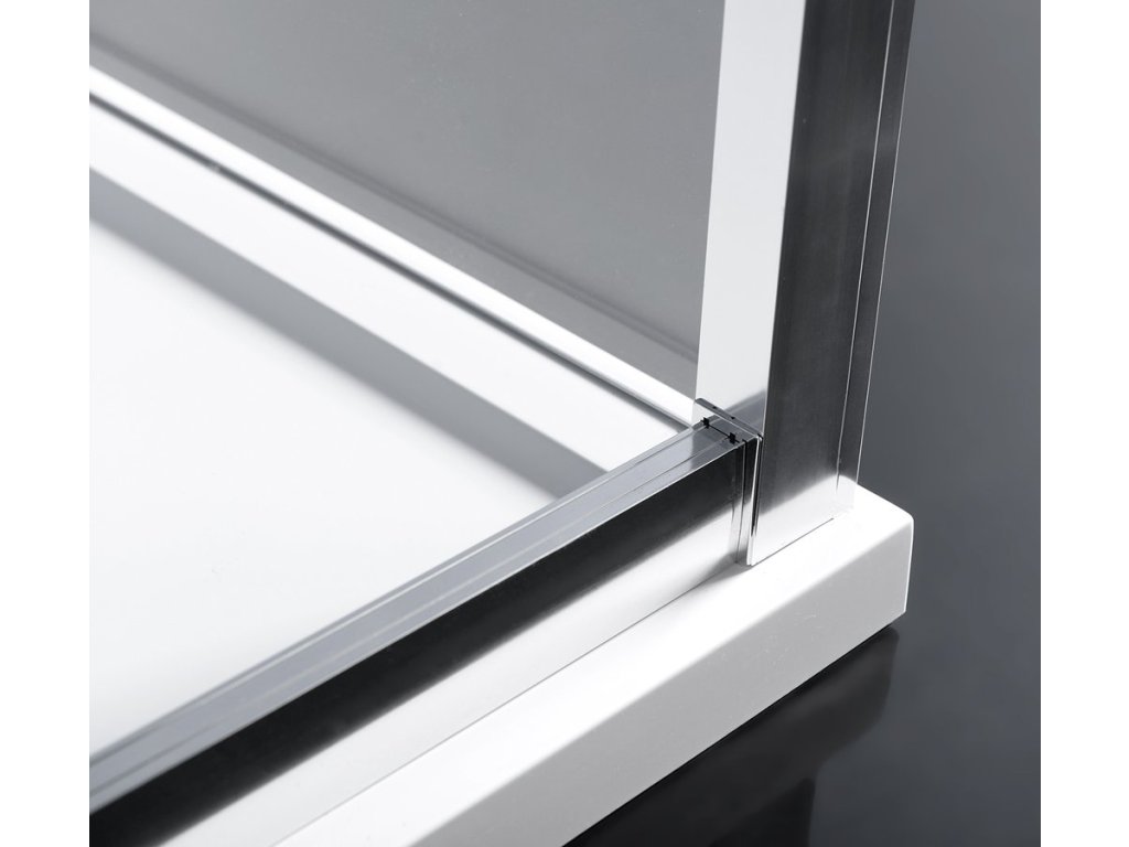 - Čtvercové zástěny s dvoudílnými posuvnými dveřmi, rohový vstup