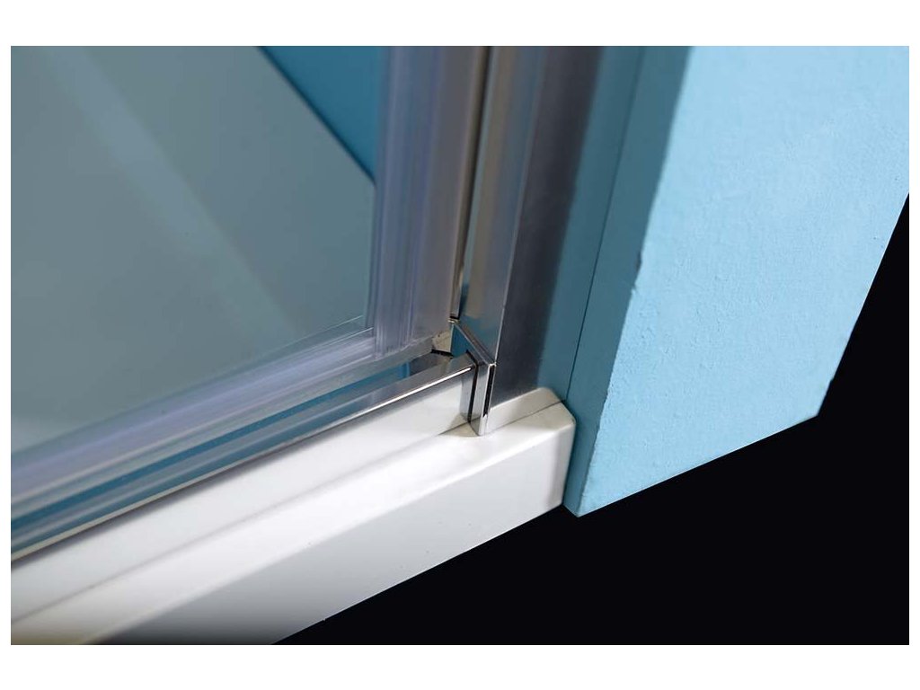 - Čtvercové zástěny s dvoudílnými posuvnými dveřmi, rohový vstup
