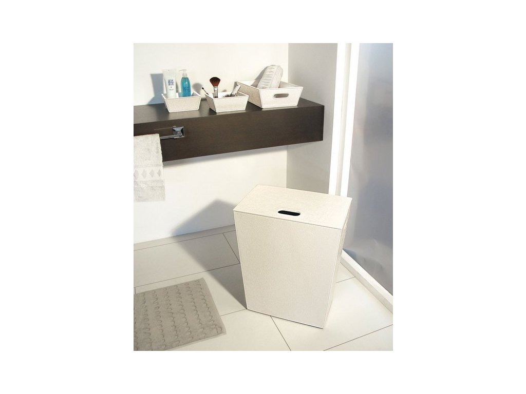 Stylové doplňky pro koupelnu v moderních barvách, vyrobené ze dřeva potaženého syntetickou kůží. Dokonalé zpracování je podtrženo ozdobným švem. Prádelní koš ECO PELLE se stane nepostradatelnou součástí koupelny.